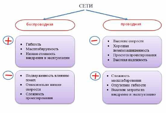 Поставьте в пустые кружочки знак «+», там, где считаете, что описаны преимущества сети и «-», где описаны недостатки сети.