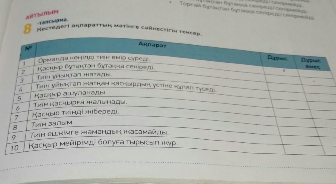 Кестедегі ақпараттың мәтінге сәйкестігін тексер.