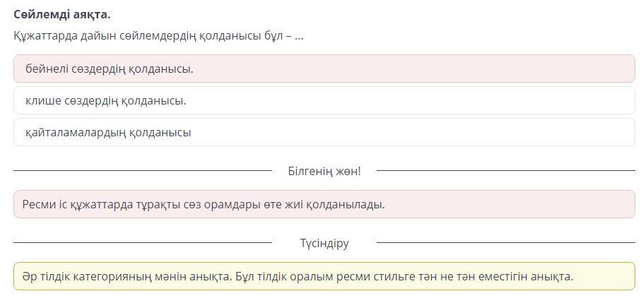 Құжаттарда дайын сөйлемдердің қолданысы бұл – ...