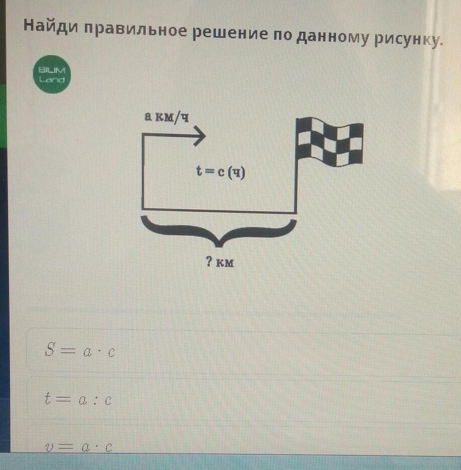 знак вопроса стоит там,где указано все расстояние.Поэтому и находим расстояние S=a*c. Чтобы найти расстояние,надо скорость умножить на время.