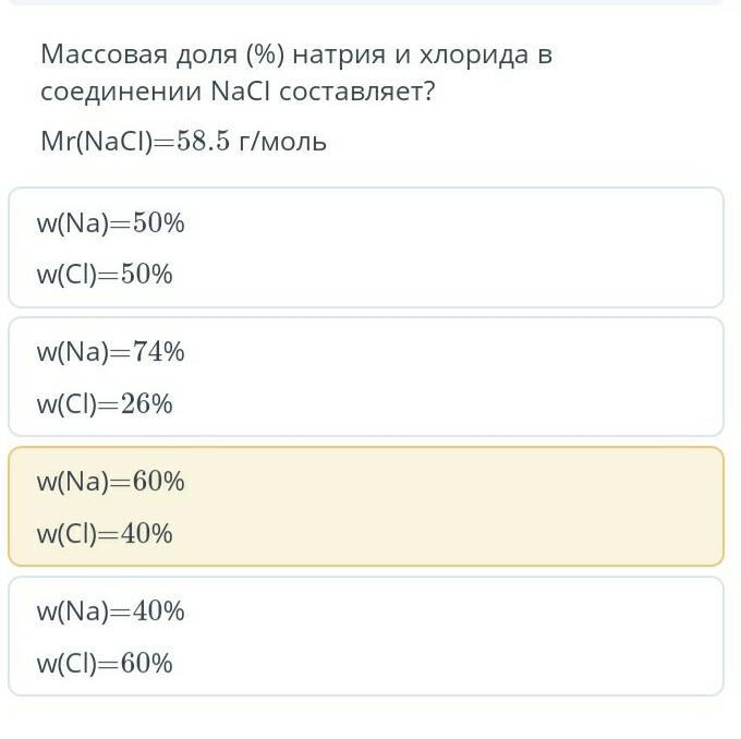 W(Na) = 23 / 58.5 * 100% = 39% ≈ 40%