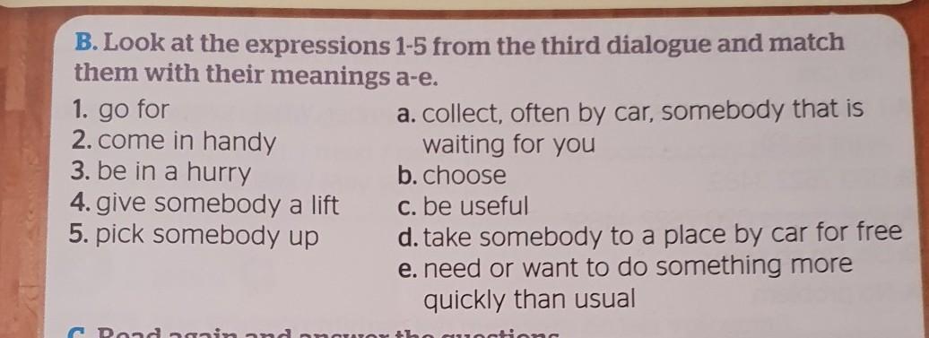 look at the expressions 1-5 from the third dialogue and match them with their meanings a-e