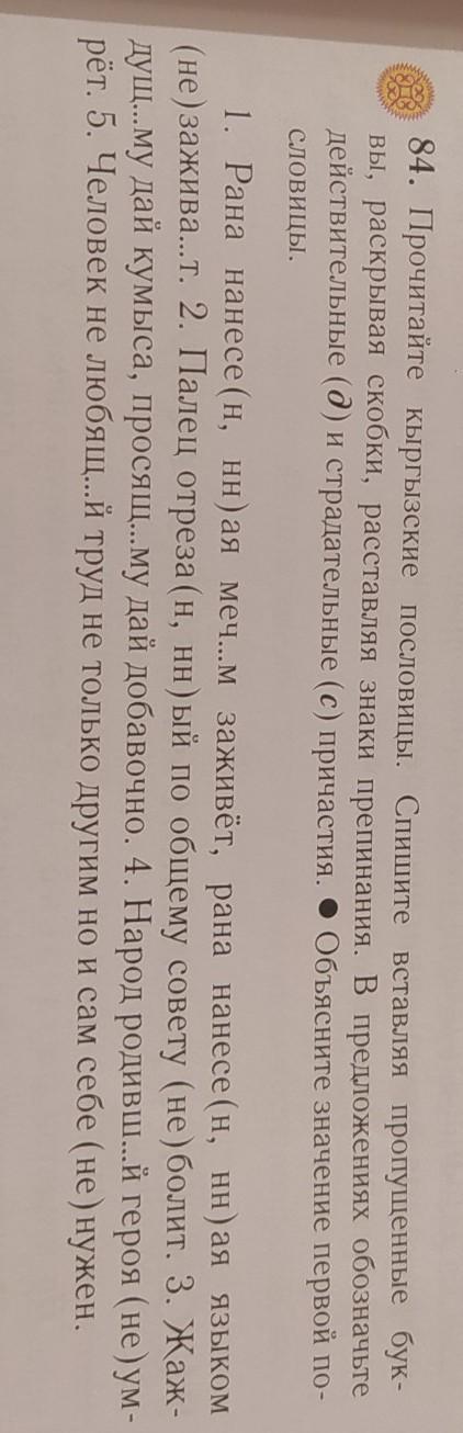 2.палец, отрезанный по общему совету - не болит. 3. Жаждущему дай кумыса, просящему дай добавочно. 4. Народ, родивший героя- не умрёт. 5. Человек, не любящий труд, не только другим, но и сам себе не нужен.