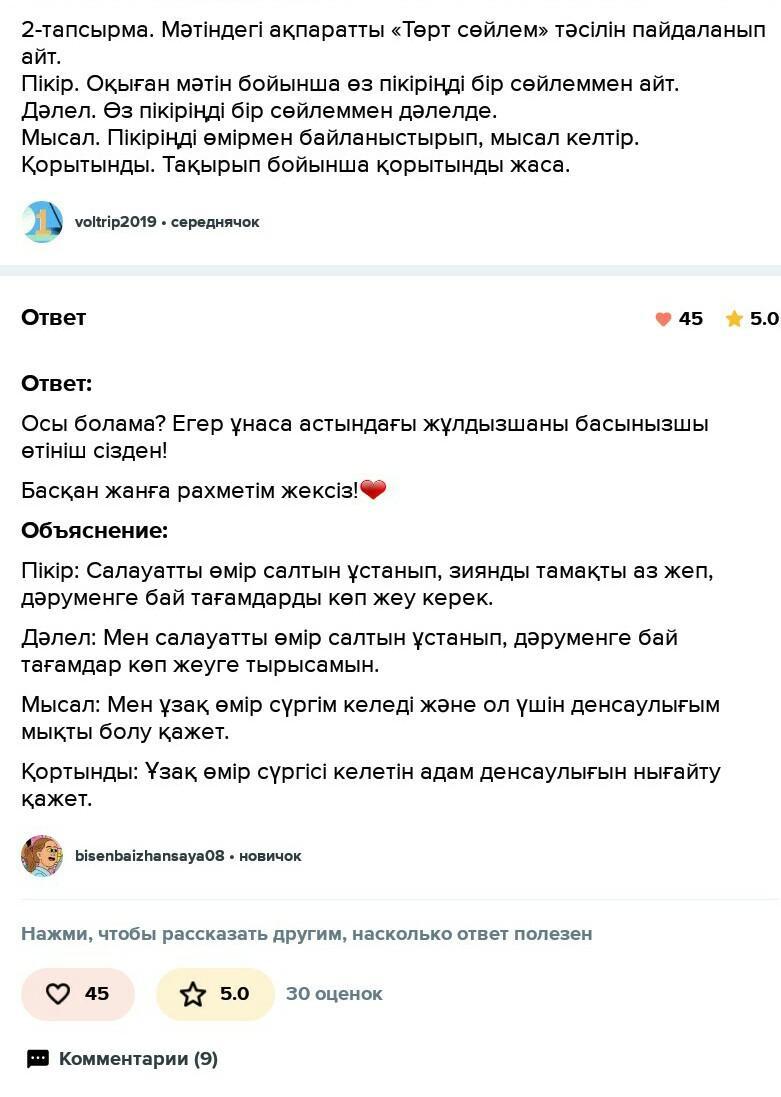 Пікір. Тыңдалым мәтіні бойынша өз пікіріңді бір