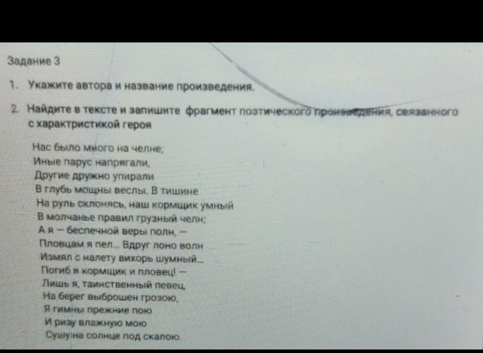 Поэтическое произведение – это сочинение писателя, написанное стихами. В задании требуется найти и записать фрагмент поэтического произведения, связанного с характеристикой героя.