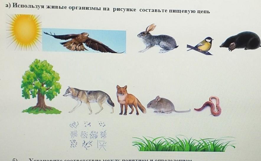 червь ест изнутри дуб потом его есть мышь, лисица поедает мышь , а волк поедает лису