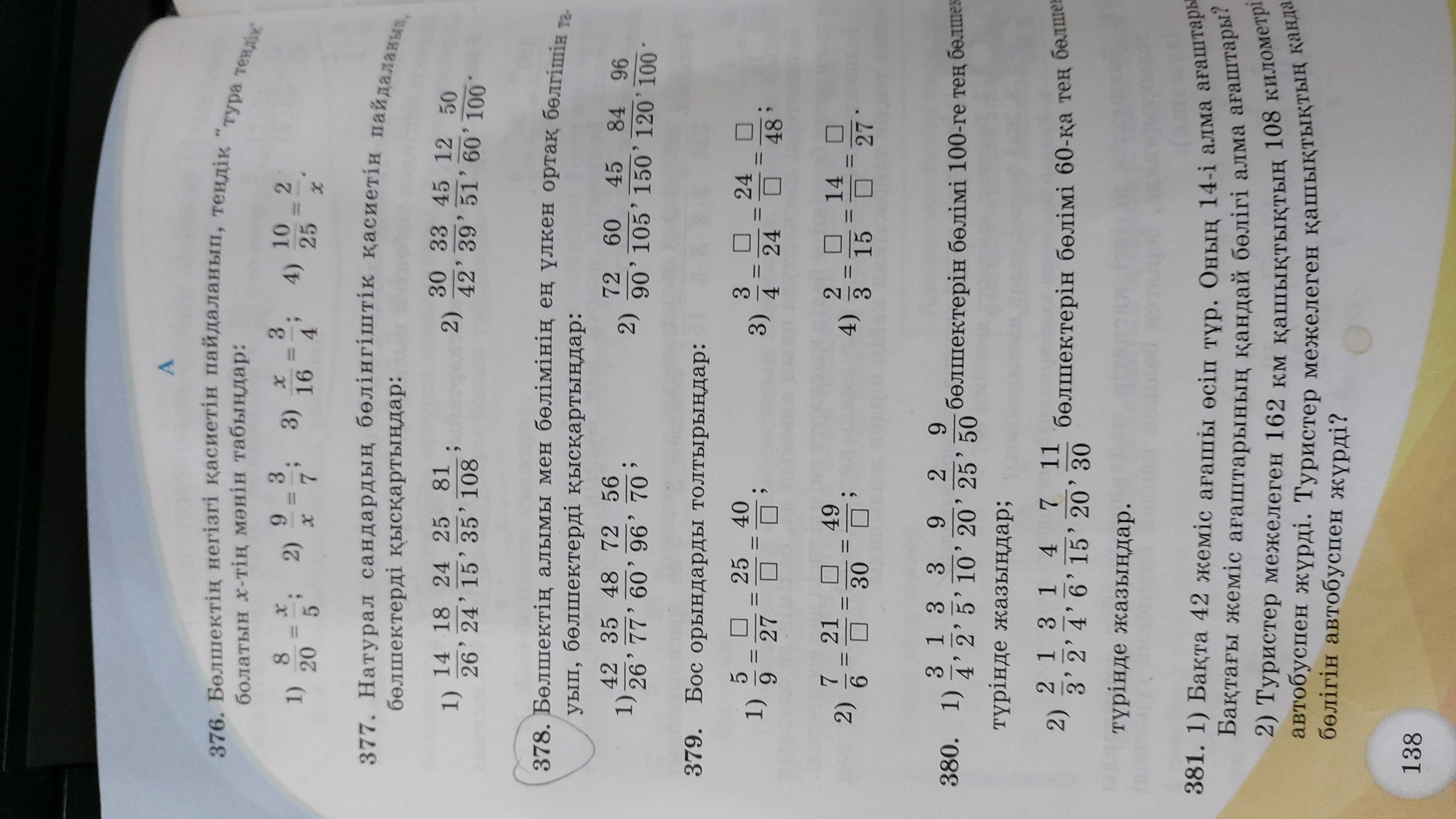 Помагите плз. 138 стр. 377 упражнение. Натурал сандардын болингиштик касиетин пайдаланып, болшектеоди кыскартындар