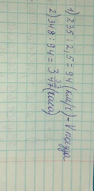 Поезд за 2,5 ч проехал расстояние 235 км. За сколько часов поезд, двигаясь с той же скоростью, проедет