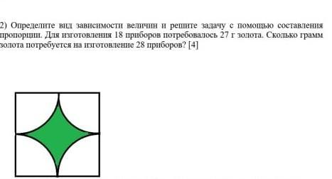 2) Определите вид зависимости величин и решите задачу с помощью составления пропорции. Для изготовления 18 приборов потребовалось 27 г золота. Сколько грамм золота потребуется на изготовление 28 приборов? [4]