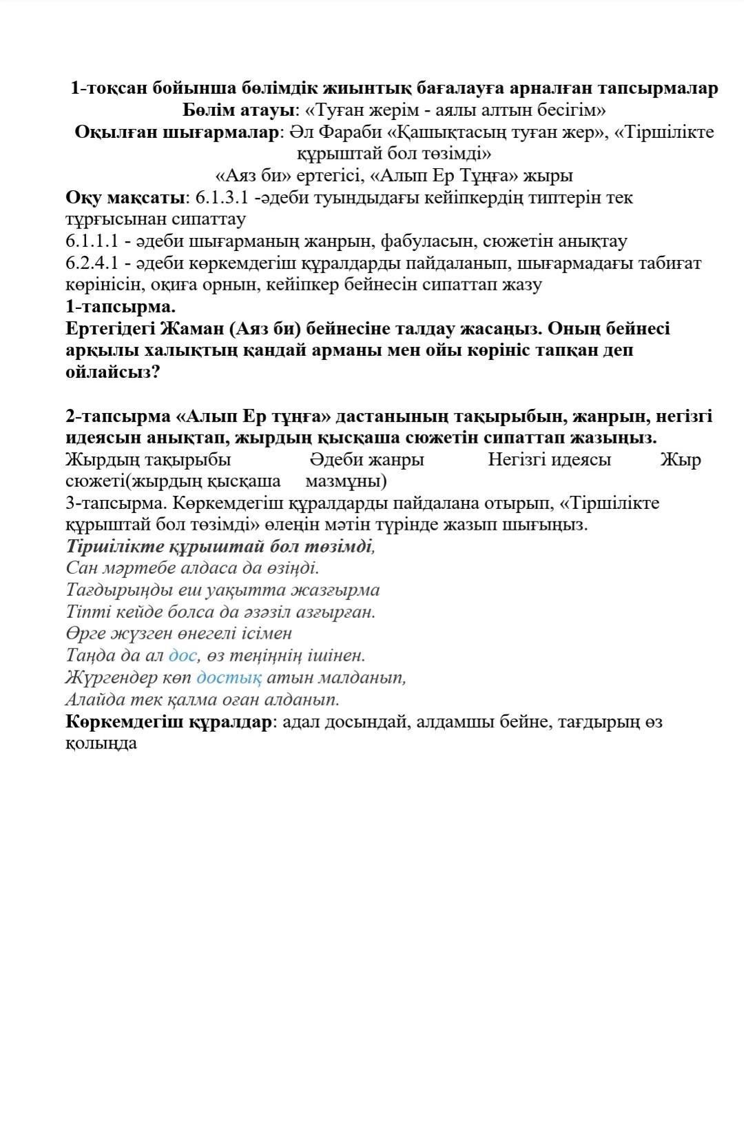1-тапсырма Жаман өте ақылды менің ойымша ол адамдардың көзінде үміт көзі болып көрінді