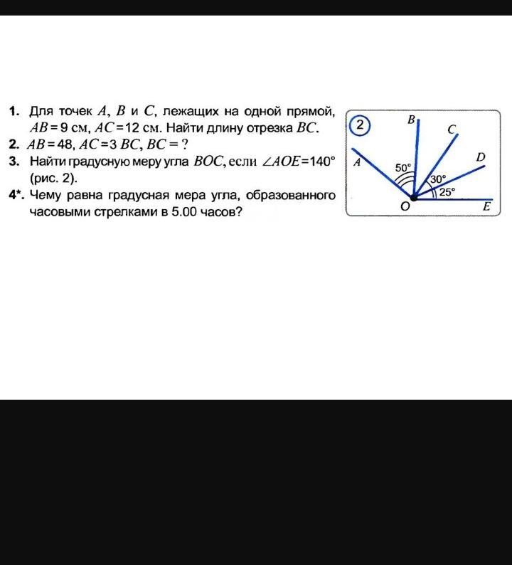 3) угол BOC=140°-(50°+30°+25°)=35°