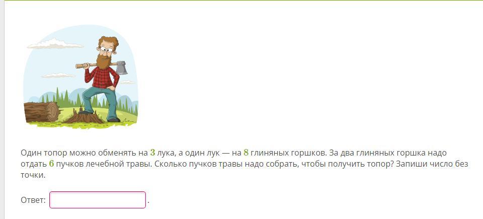 Если 6 пучков это 2 глиняных горшка, то 6 : 2 x 8 = 24 пучка травы.