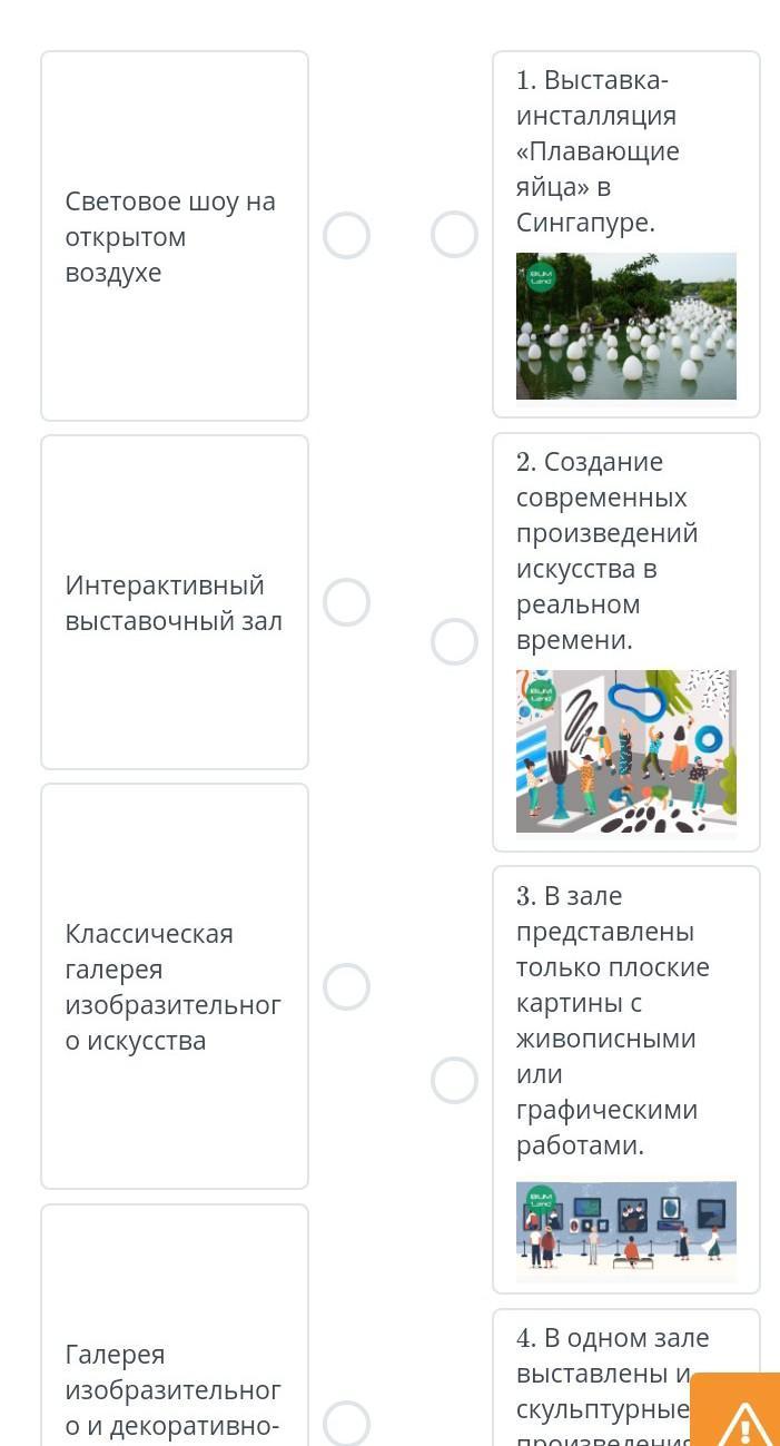 3. В зале представлены только плоские картины с живописными или графическими работами.