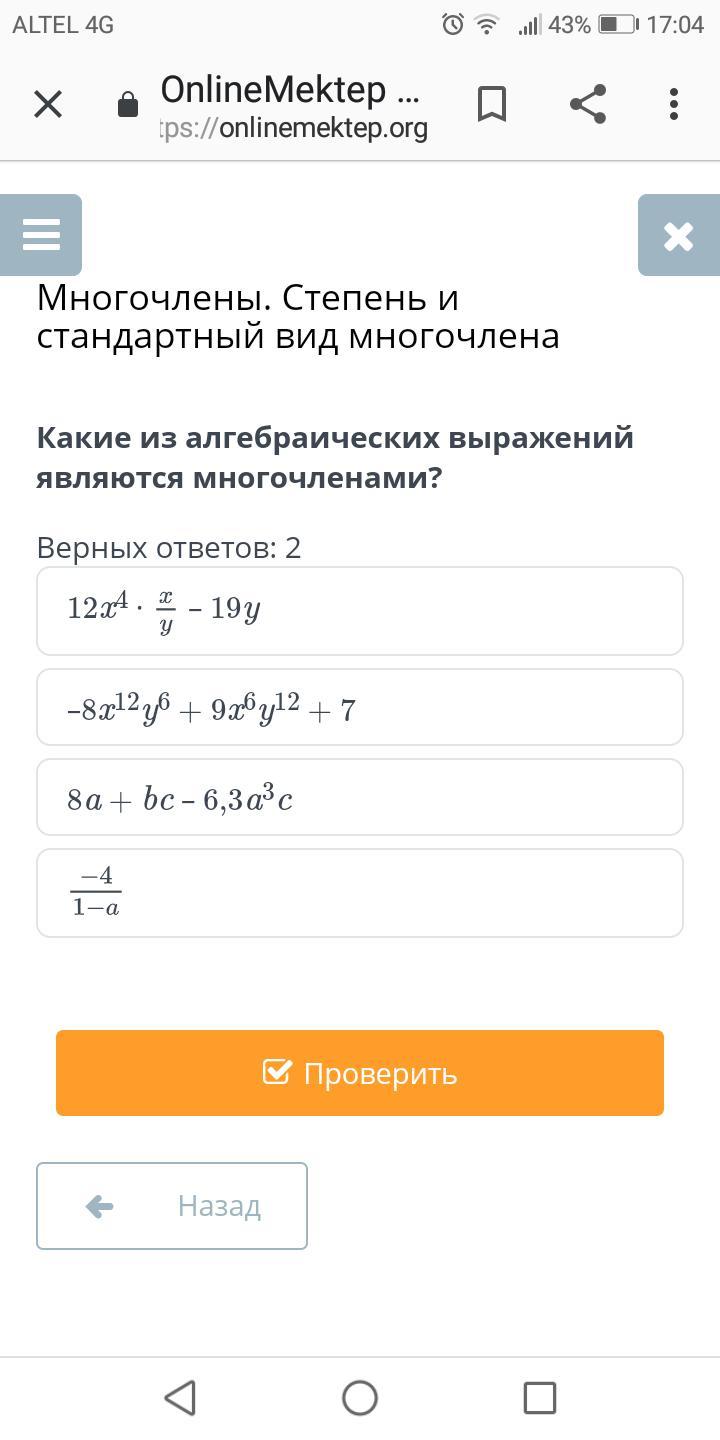 Какие из данных алгеобрических выражений являются многочленами? Помогите пж. Дам 10б