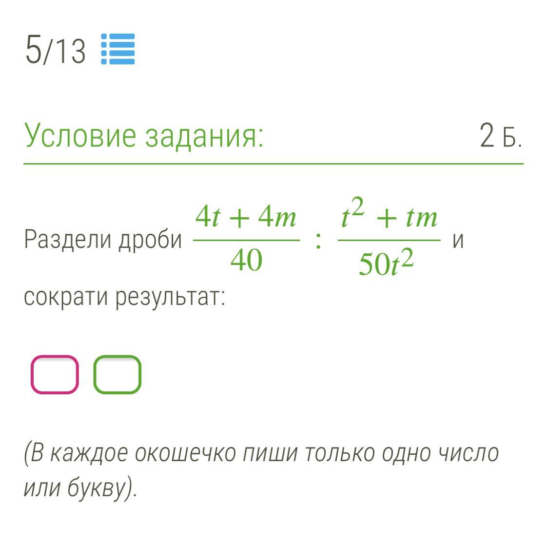 4(t+m)/40: t(t+m)/50t² ( После сокращения)
