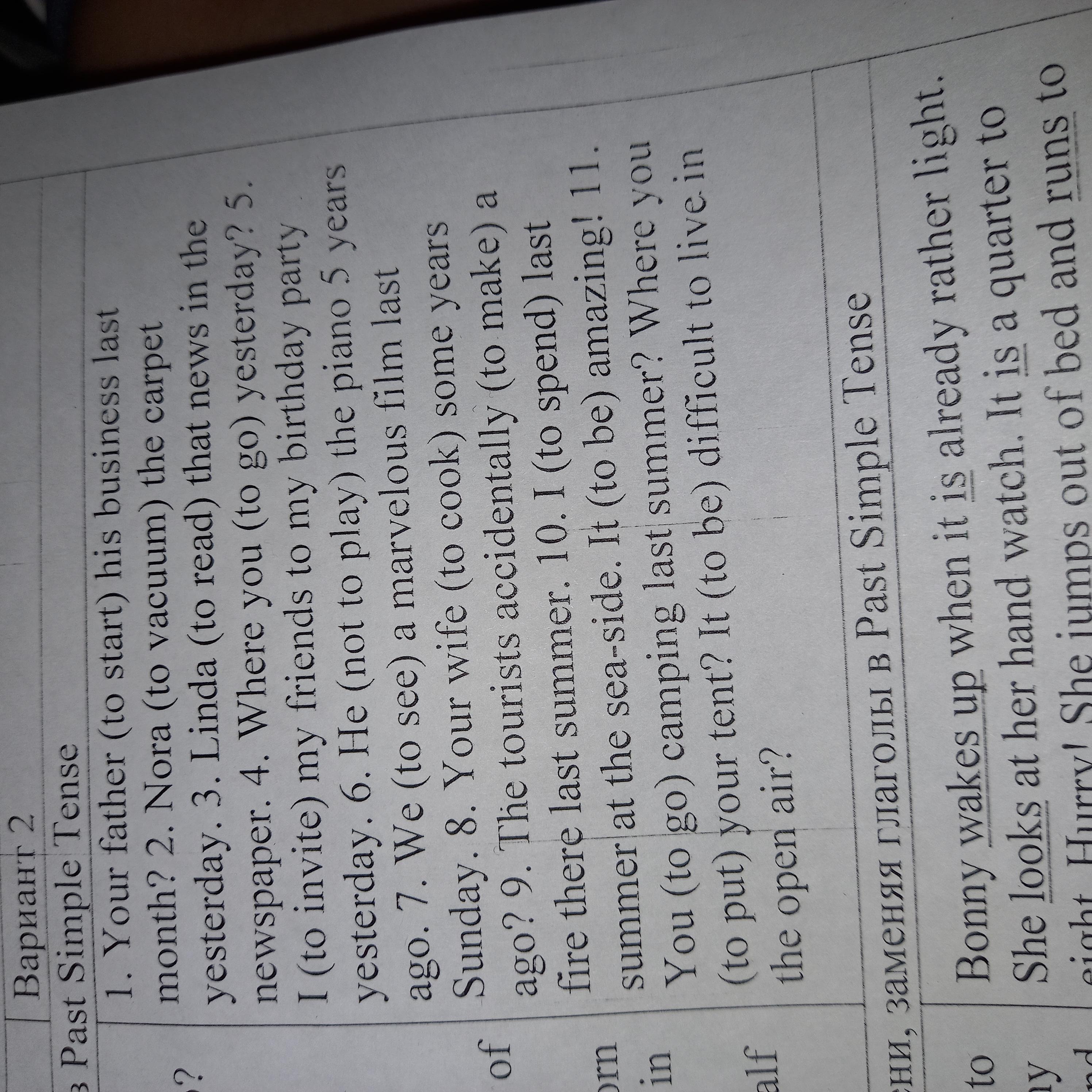 1) starting 2) vacuming 3) read (читается как рэд) 4) went 5) invited 6) dont played 7) saw 8) cooked 9) made 10) spending 11) незнаю 12) went 13) put 14) незнаю