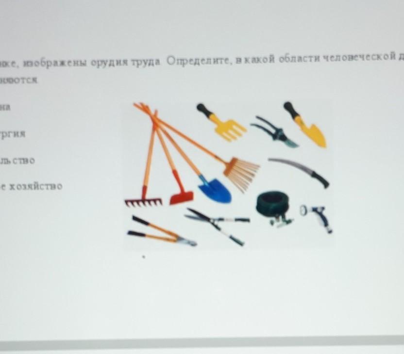 а) На рисунке, изображены орудия труда. Определите, в какой области человеческой деятельности