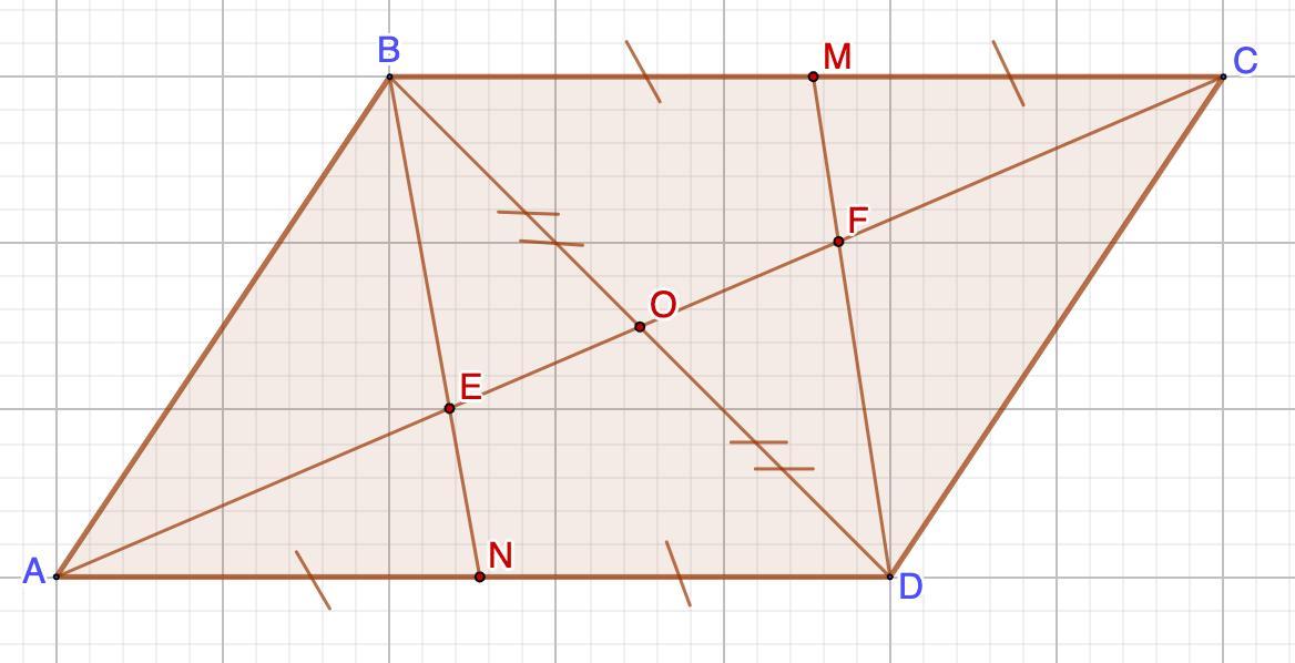 Точки M и N- середины сторон BC и AD параллелограмма ABCD. Докажите что прямые BN и MD делят диагональ AC на три равные части