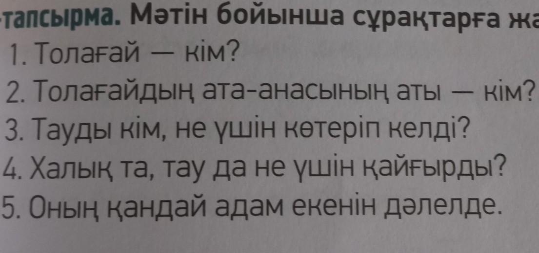 5-тапсырма, 55-бет Мәтін бойынша сұрақтарға жауап беріңіз.