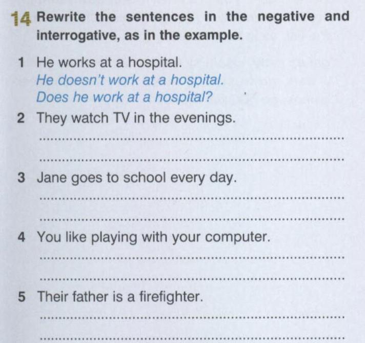 their father is a firefighter из утвердительного предложения построить отрицательное предложение и вопросительное ещё вот сделай
