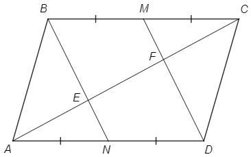 Точки M и N -середины сторон BC иAD паралеллограмма ABCD. Докажите что прямые BN иMDделят диагонали Ac на три равные части