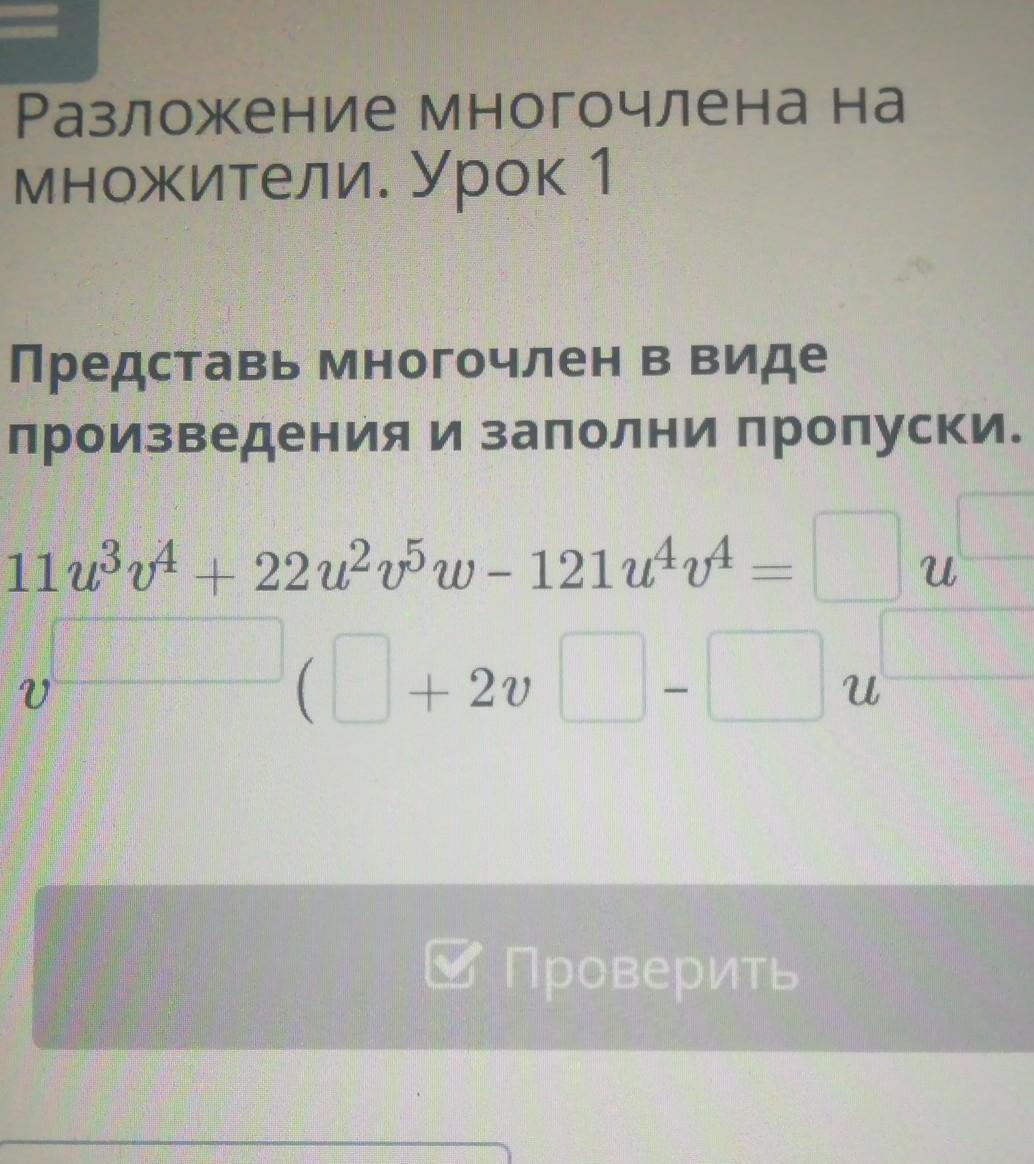 11u³v⁴+22u²v⁵w-121u⁴v⁴=11u²v⁴(u+2vw-11u²)