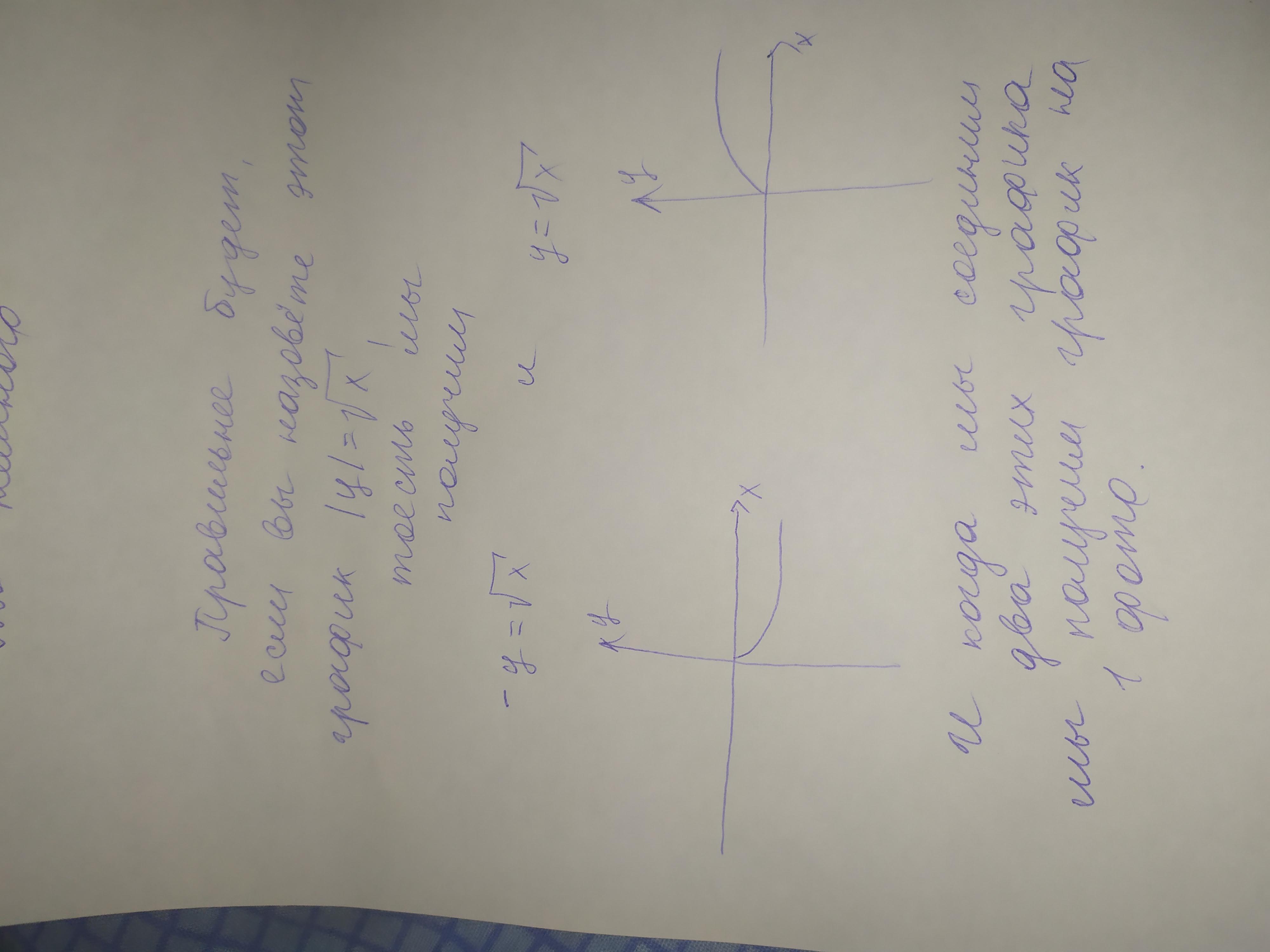 Правильно ли,что график функции y = √x будет выглядеть,как на первом фото? Если использовать именно не арифметический квадратный корень,а квадратный. И получается,что √ из любого положительно числа равен двум значениям: положительному и отрицательному(например,√4 = 2 и √4 = -2)