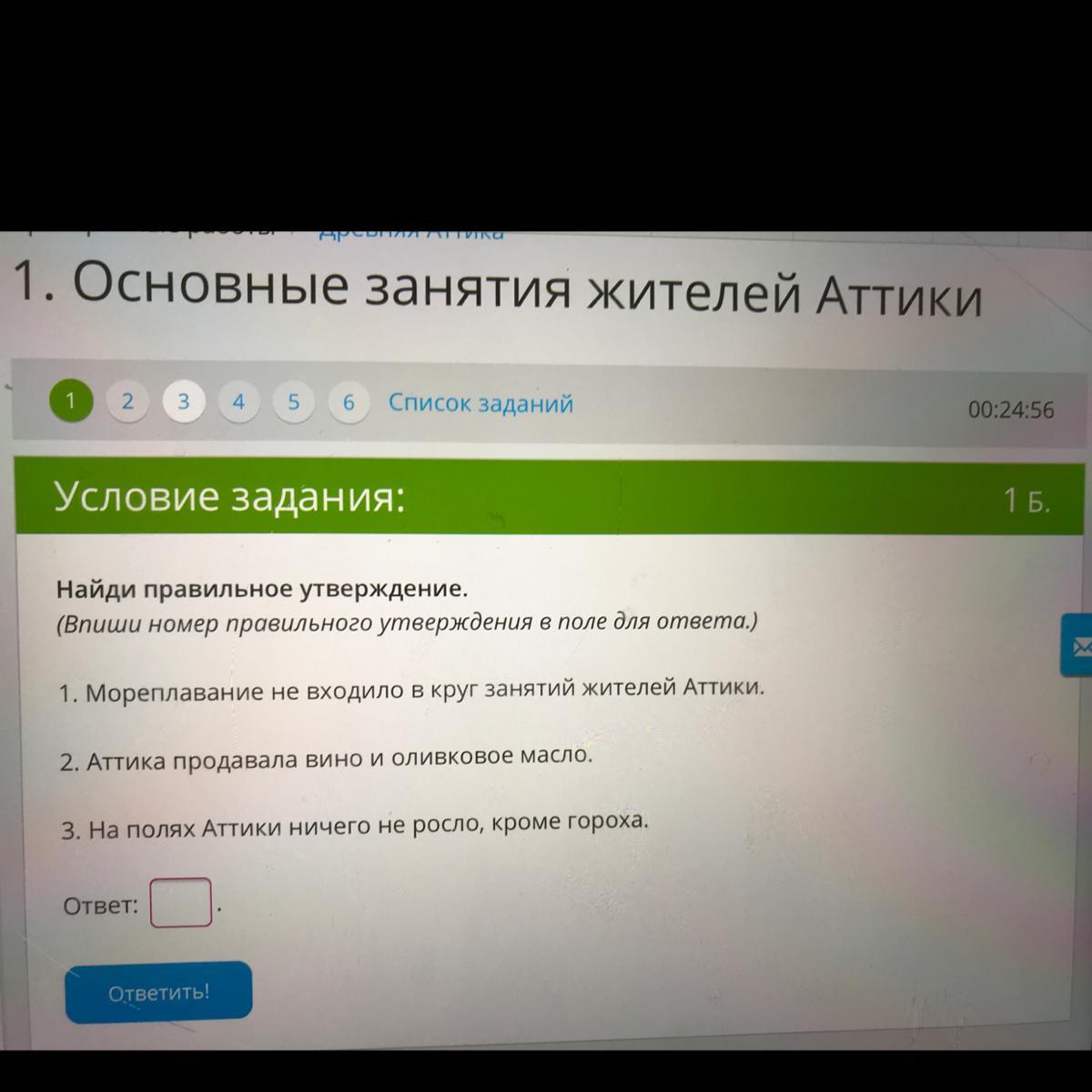 1. Мореплавание не входило в круг занятий жителей Аттики.