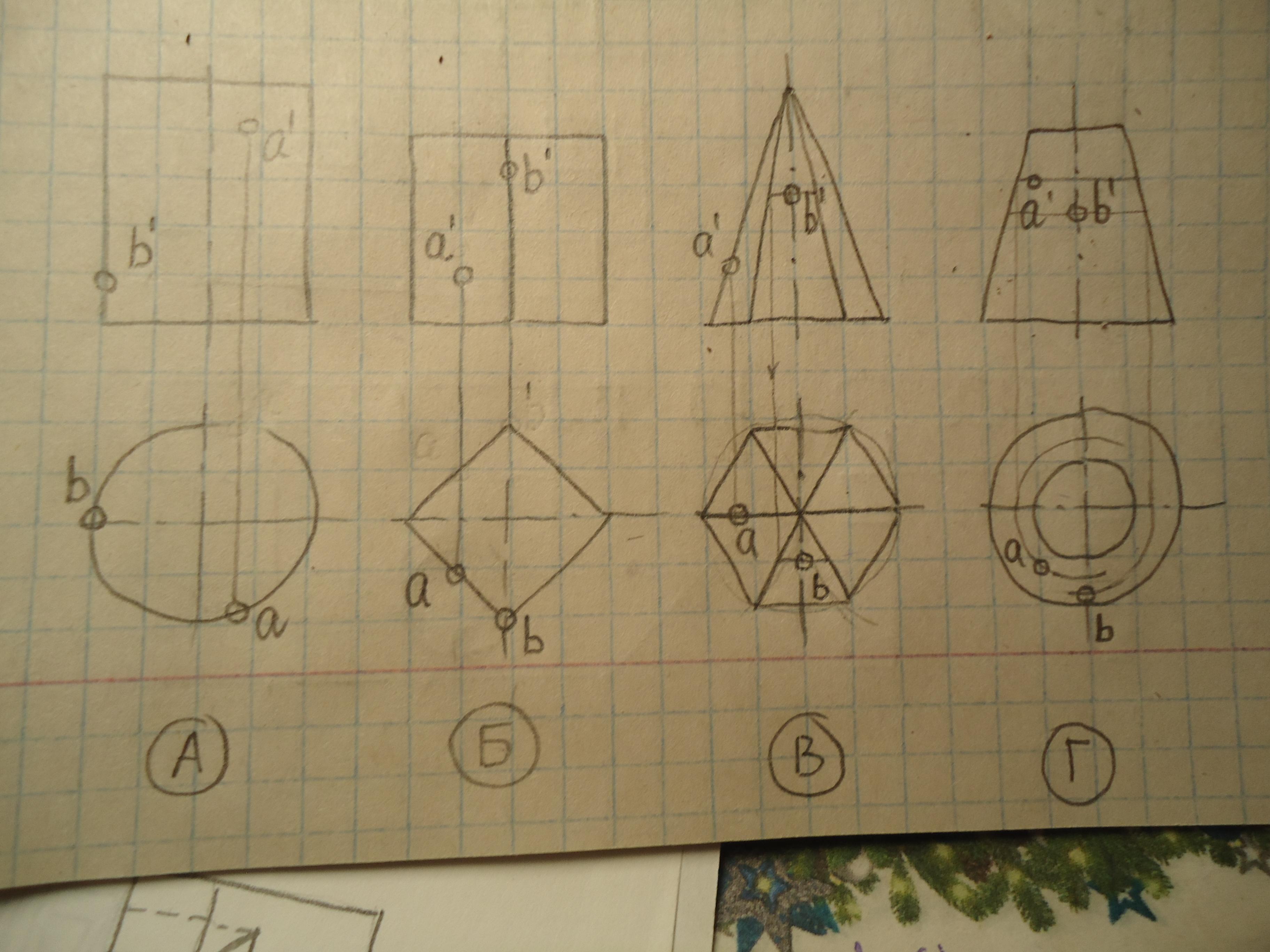 Построение точек на проекциях деталей см. на фото.