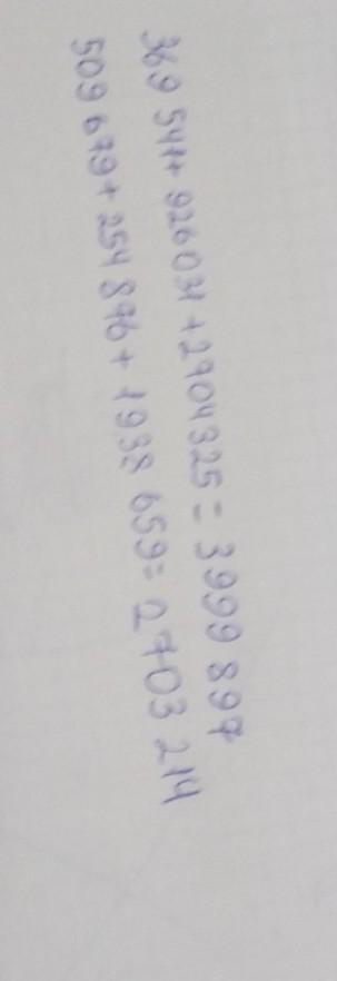 1) 369 541 + 926 031 + 2 704325=1 295 572+2 704 325. 2) 509 679+254876+1 938 659=764 555+1 938 659=2 703 214.