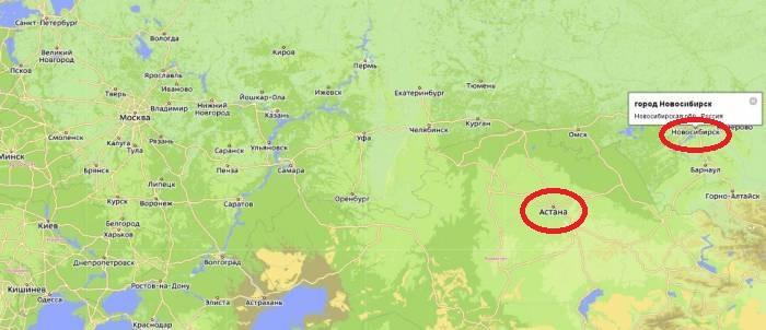 1.Находим координаты долготы у Новосибирска и Астаны: