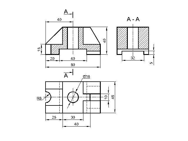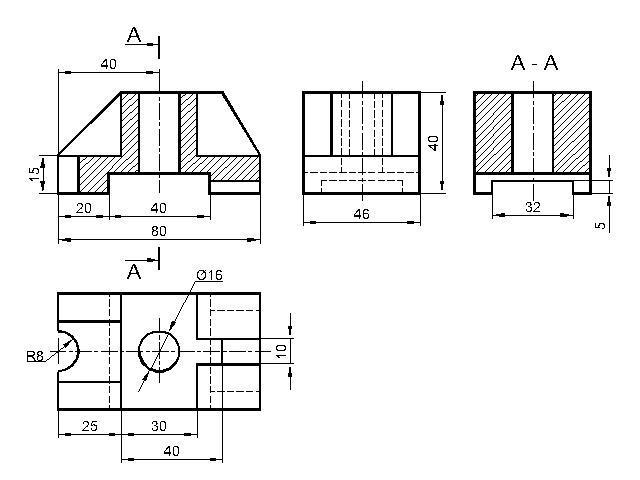 На первом чертеже главный вид заменила фронтальным разрезом (обозначать не нужно, т.к. выполнен по оси симметрии), а вид слева - профильным разрезом А-А.