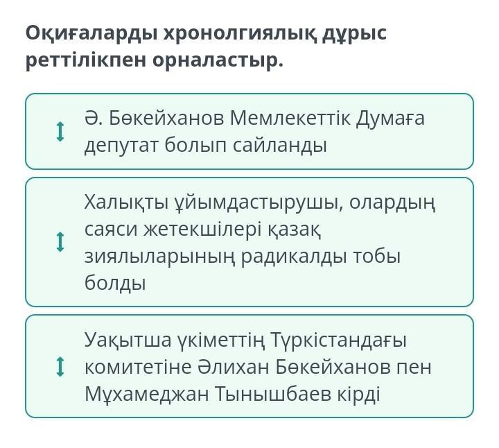 Оқиғаларды хронолгиялық дұрыс реттілікпен орналастыр.