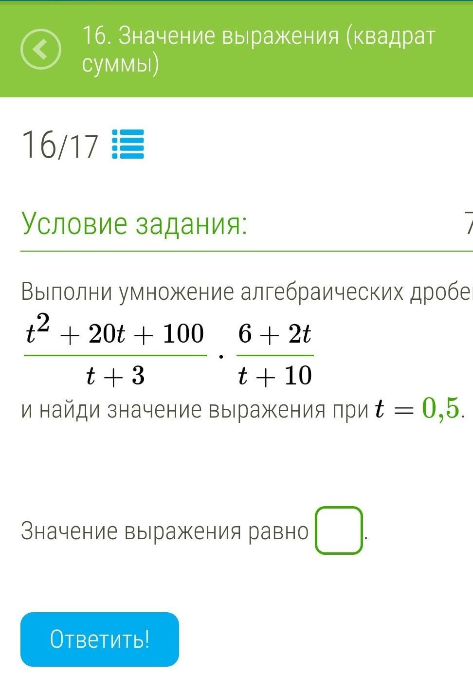 =(t+10)^2 *2(3+t) /(t+3)(t+10)=2(t+10)=2t+20=2*0,5 +20=1+20=21