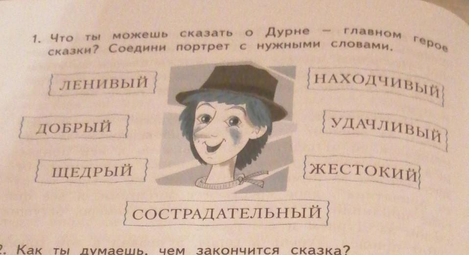 Главный герой сказки Дурень-младший сын у Старухи и Старика.Матушка любила старших двух сыновей,а Дурень рос в тени старших молодцов,мать не замечала его хороших качеств.Дурень доедал за братьями,донашивал их одежду,рос незаметным,но упрямым.Наблюдательный,он смотрел как всё делают другие и сам учился.Добрый и наивный,Дурень легко сходился с людьми,любил слушать,делать добрые поступки и люди ему платили тем же.Смекалка и друзья помогли Дурню построить корабль и выполнить желания царя,а приодевшись,Дурень стал хорош собой,да не глупым оказался,а очень добрым и заботливым,душевная теплота и народная мудрость сделали дурня Царевичем.
