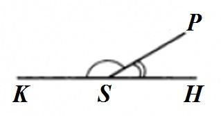 На рисунке изображена пара смежных углов KSP и HSP. У них сторона SP является общей, а у сторон KS и HS есть общая точка S и они расположены на одной прямой.