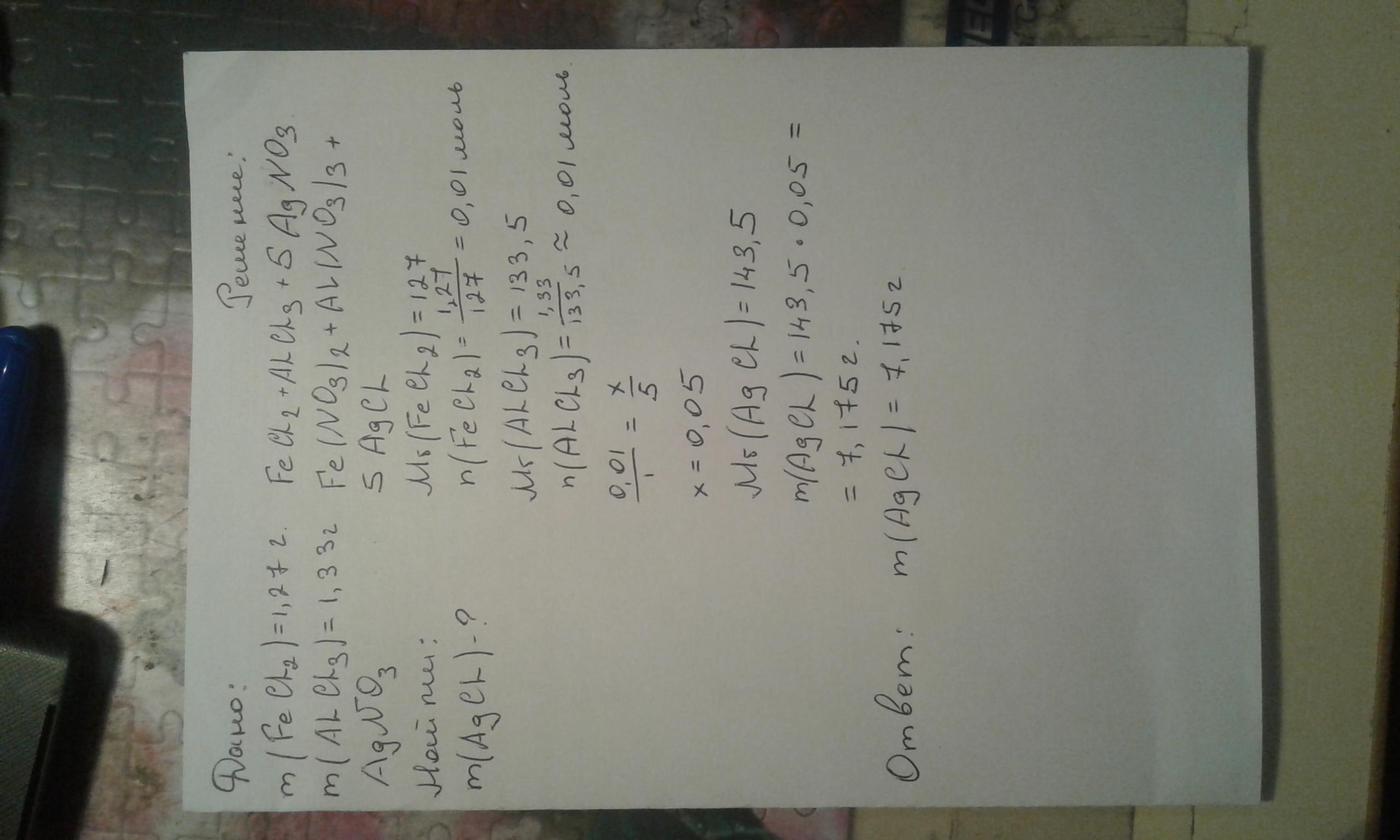 к раствору смеси, содержащего 1.27 г хлорида железа (ll) и 1.33 хлорида алюминия, добавили в достаточном количестве растровор нитрата серебра. найдите массу образовавшегося осадка