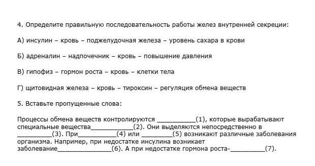 5. Железами, гормоны, кровь, гипофункции или гиперфункции, сахарный диабет, карликовость