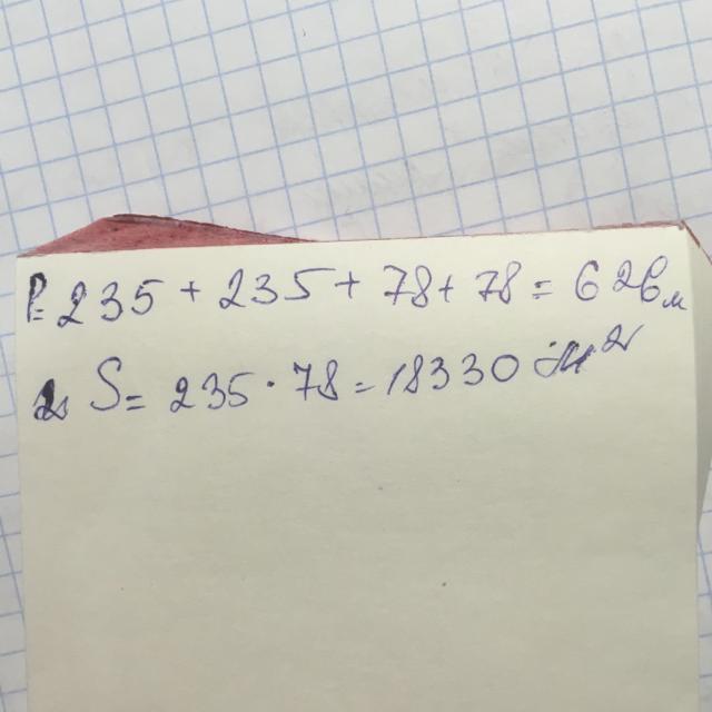 длина прямоугольного участка земли 235м ширина 78м найдите площадь и периметр поля