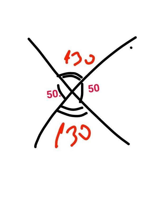 Уктворяться вертикальні кути два кути по 50, іншу два по 130