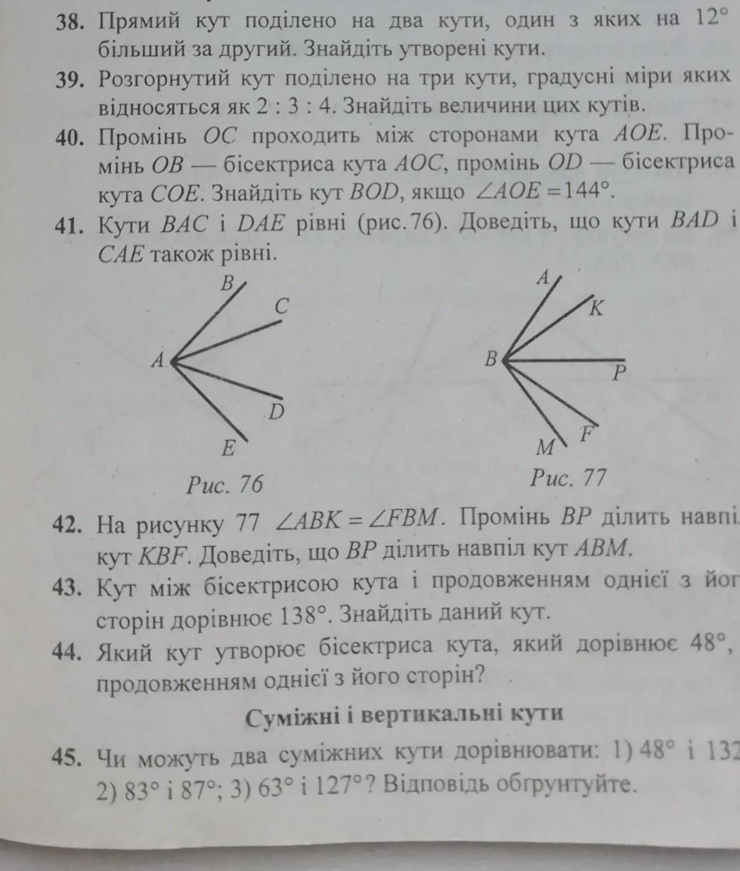 сума суміжних кутів = 180°