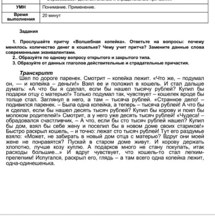 2.Почему кошелек стал легким? Взял ли паренек копейку лежащую на дороге?