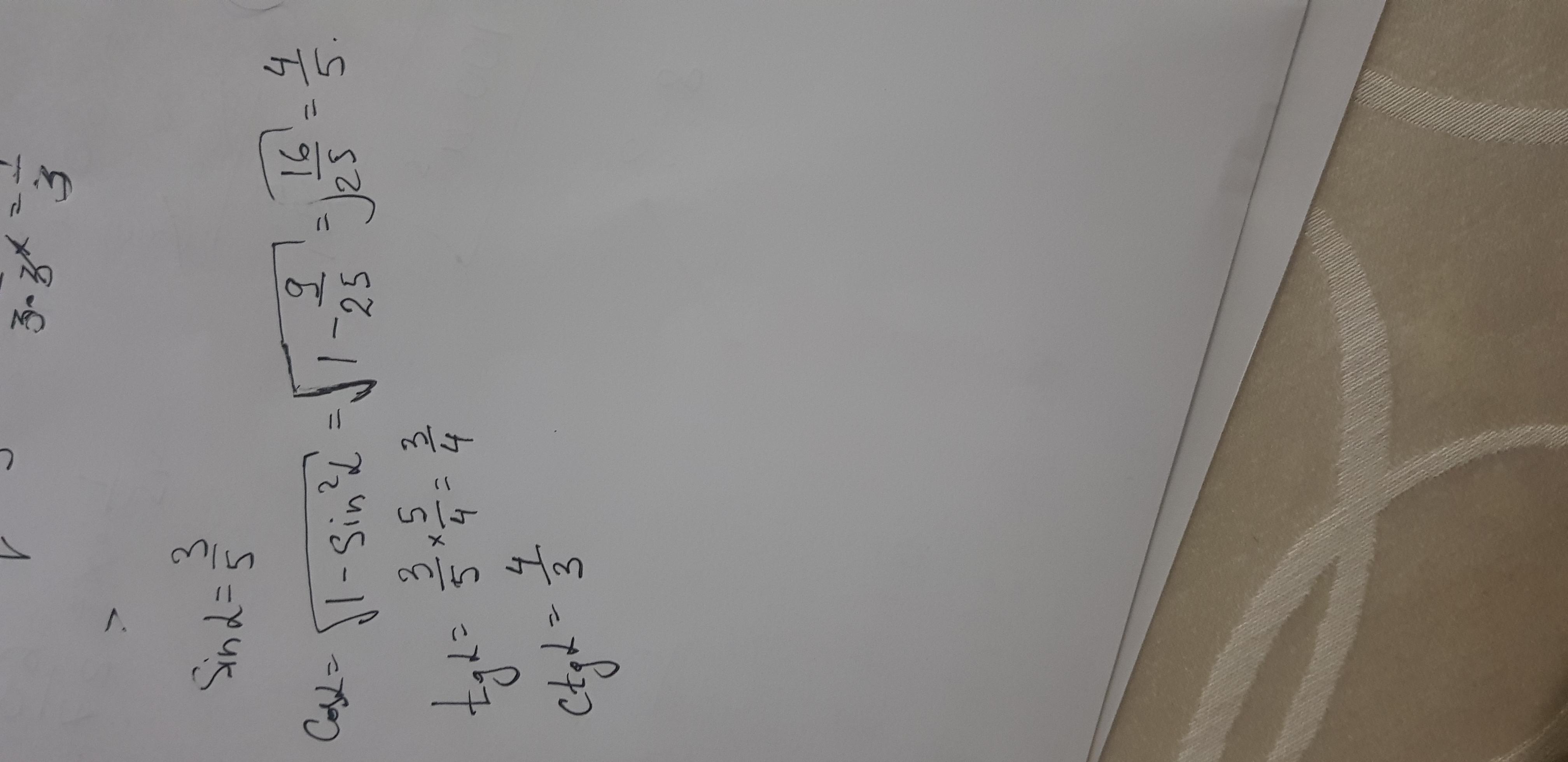 cos²α = 1 - sin²α = 1 - (3/5)² = 25/25 - 9/25 = 16/25;