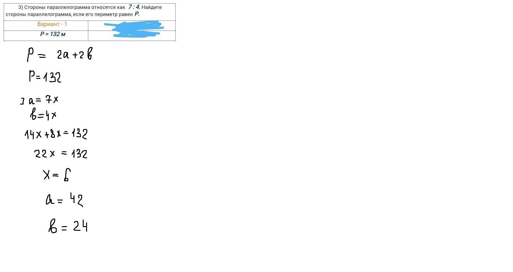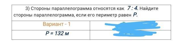 стороны относятся как 7:4, значит одна сторона - 7х, а другая - 4х.