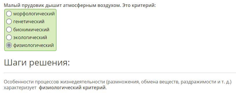 Малый прудовик дышит атмосферным воздухом. Это критерий:
