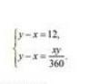 во 2-е уравнение вместо у-х подставим 12, 12=ху/360,
