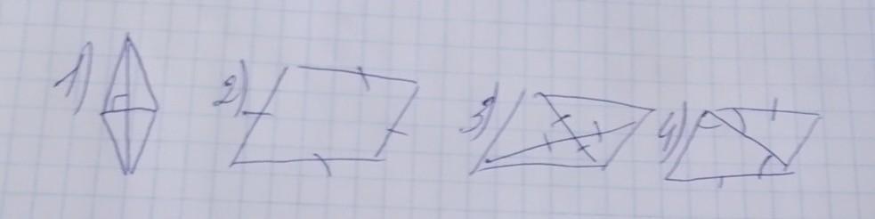 Какая фигура не является ромбом? Учитель сказал, что тут 1 или 2 рисунка ромбом не является.