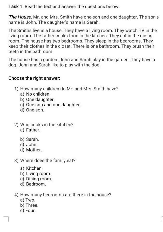 The House: Mr. and Mrs. Smith have one son and one daughter. The son's