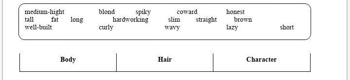Ответ:body: medium-hight, fat, long, tall, slim,