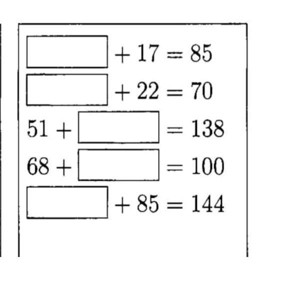 Чтобы найти неизвестное слагаемое, нужно от суммы отнять известное слагаемое 85-17=68